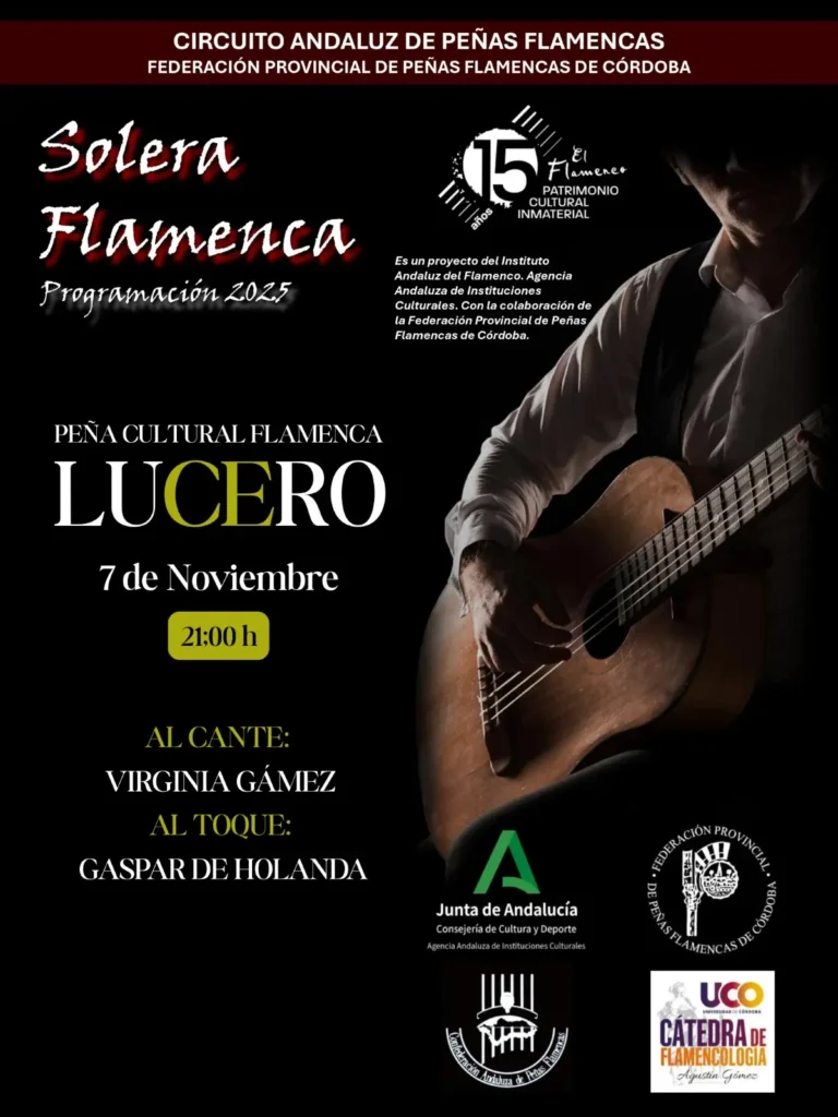 Durante 2025, la Peña Cultural Flamenca El Lucero de Montilla, con sede en Montilla (Córdoba), ha continuado su labor de promoción y difusión del flamenco tradicional a través de una cartelería marcada por el respeto a las raíces. Los carteles diseñados para las diferentes actividades, recitales y eventos de la peña reflejan un compromiso firme con la calidad estética y la identidad cultural, sirviendo como vehículo para mantener viva la esencia del arte flamenco.