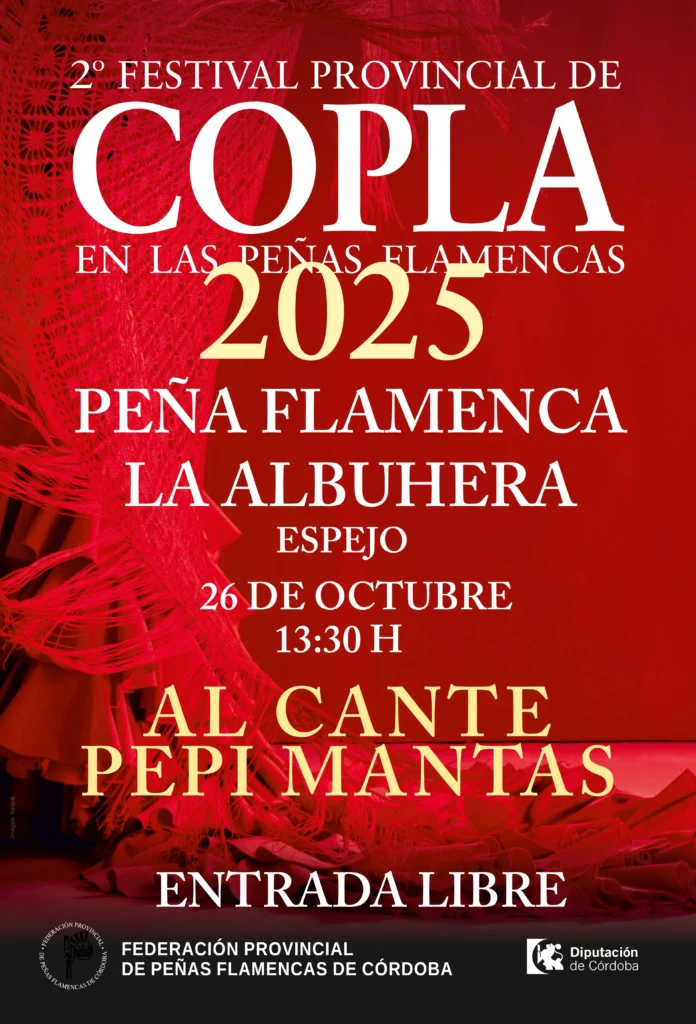 Durante 2025, la Peña Cultural Flamenca La Albuhera, con sede en Espejo (Córdoba), ha continuado su labor de promoción y difusión del flamenco tradicional a través de una cartelería marcada por el respeto a las raíces andaluzas. Los carteles diseñados para las diferentes actividades, recitales y eventos de la peña reflejan un compromiso firme con la calidad estética y la identidad cultural, sirviendo como vehículo para mantener la esencia del arte flamenco.