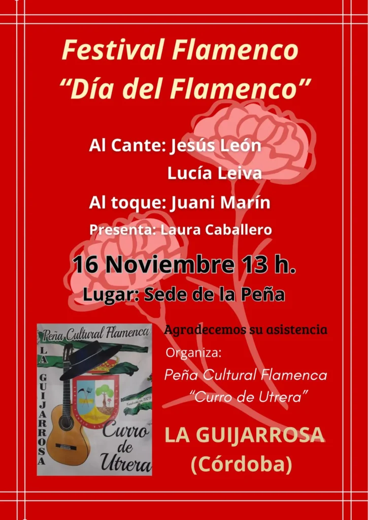 Durante 2025, la Peña Cultural Flamenca Curro de Utrera, con sede en La Guijarrosa (Córdoba), ha continuado su labor de promoción y difusión del flamenco tradicional a través de una cartelería por el respeto por las raíces andaluzas. Los carteles diseñados para las diferentes actividades, recitales y eventos de la peña reflejan un compromiso firme con la calidad estética y la identidad cultural, sirviendo como vehículo para mantener la esencia del arte flamenco.