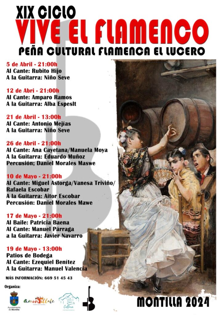La cartelería flamenca editada por la Peña Cultural Flamenca El Lucero de Montilla a lo largo de 2024 constituye un valioso testimonio del compromiso de la entidad con la difusión del flamenco tradicional en Montilla y su entorno. A través de una cuidada selección de diseños, imágenes y textos, cada cartel no solo anunciaba un evento, sino que transmitía la identidad visual, la sensibilidad estética y la vocación cultural de la peña.