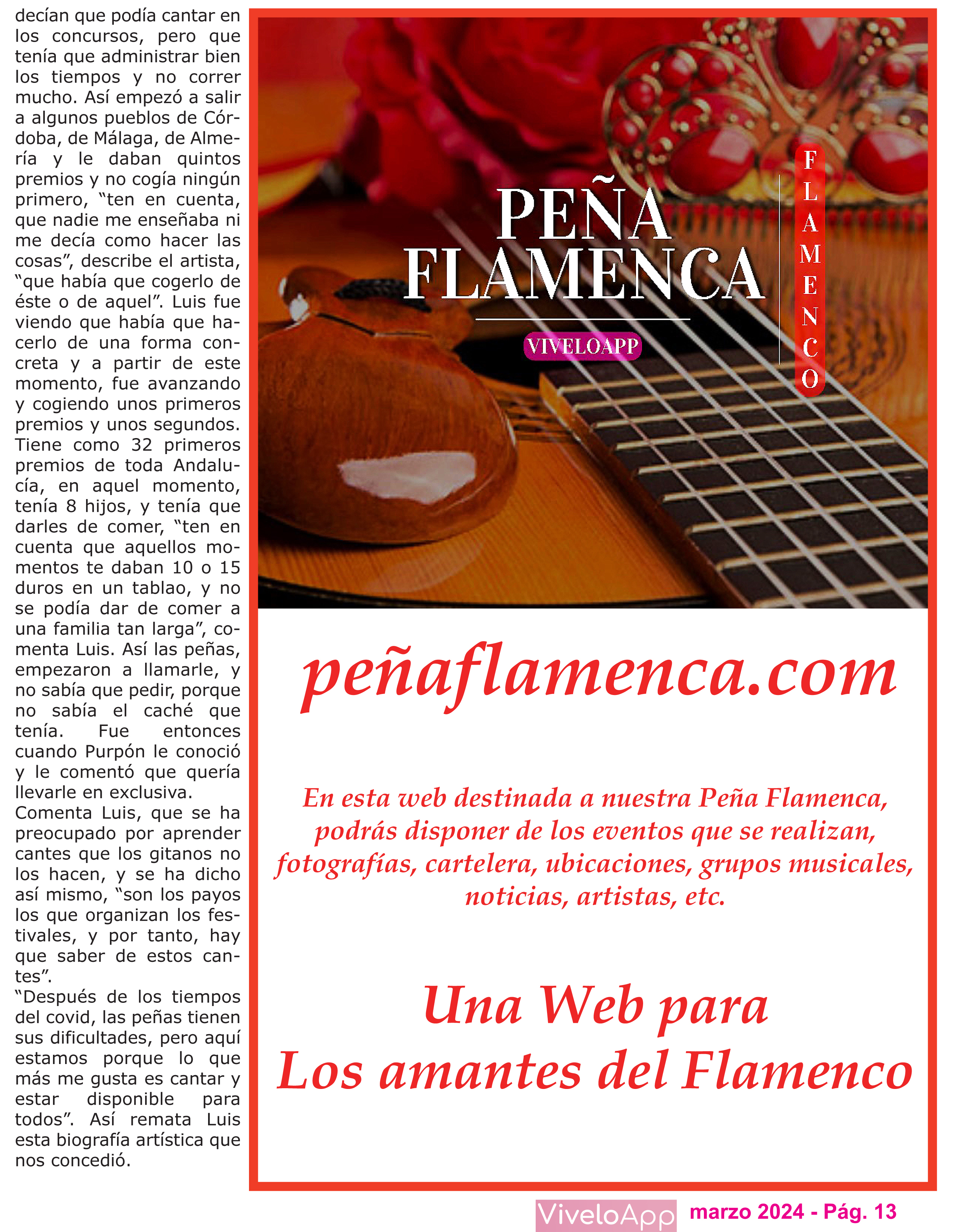 Cada página transmite la pasión por el arte jondo, destacando la participación tanto de artistas reconocidos como de nuevos talentos emergentes. La revista es un reflejo del esfuerzo continuo por mantener viva la identidad flamenca y fortalecer el legado cultural andaluz en el ámbito rural.